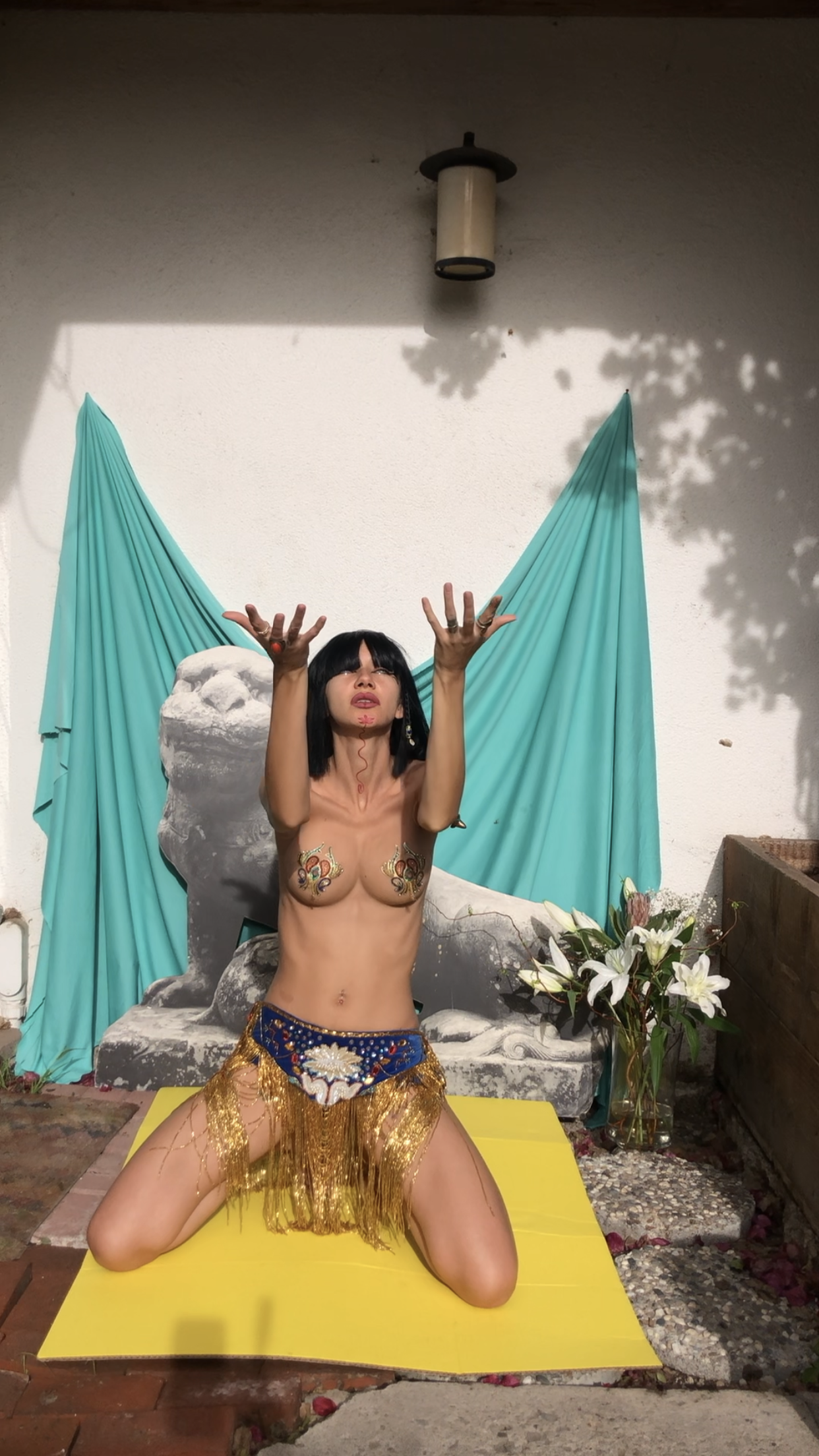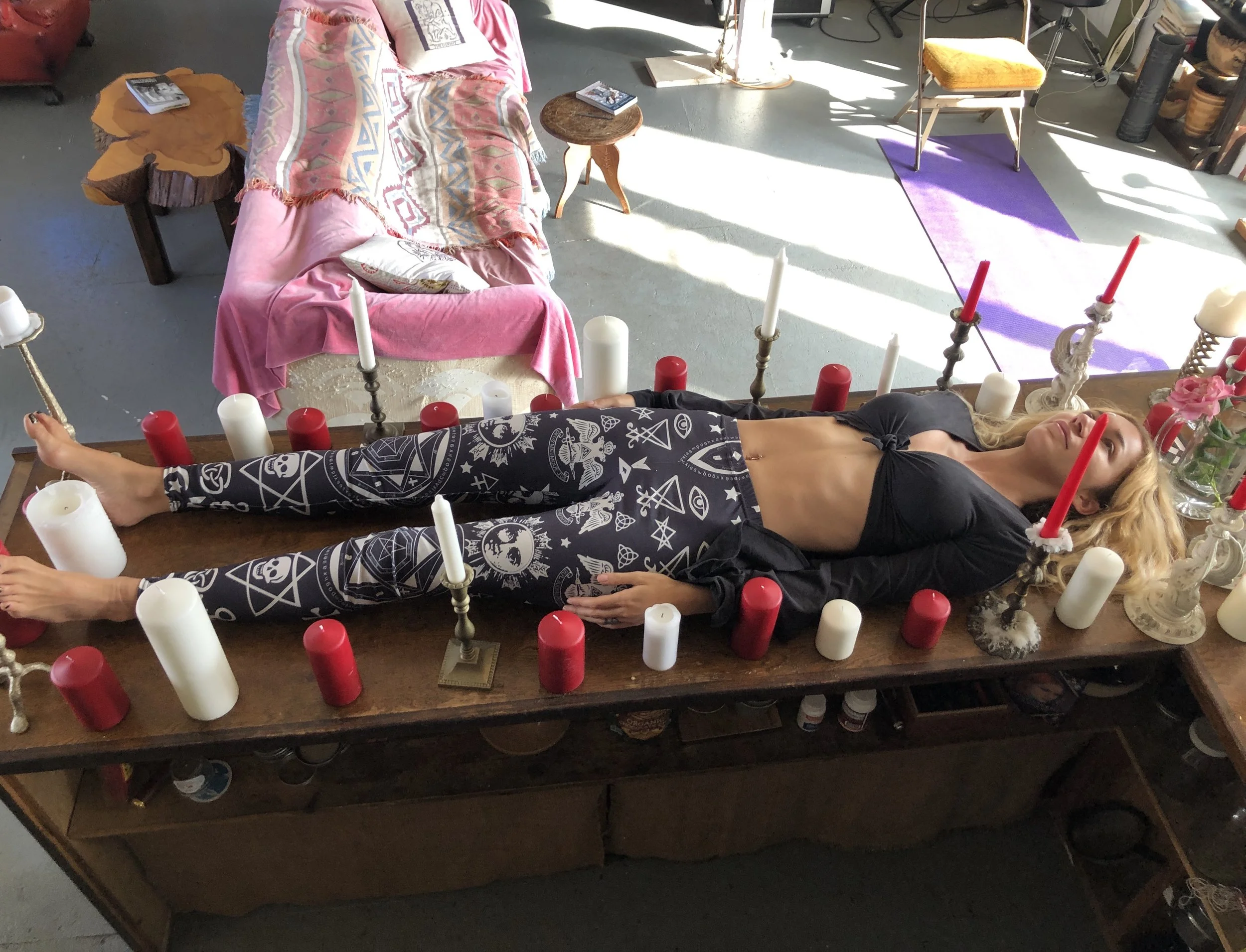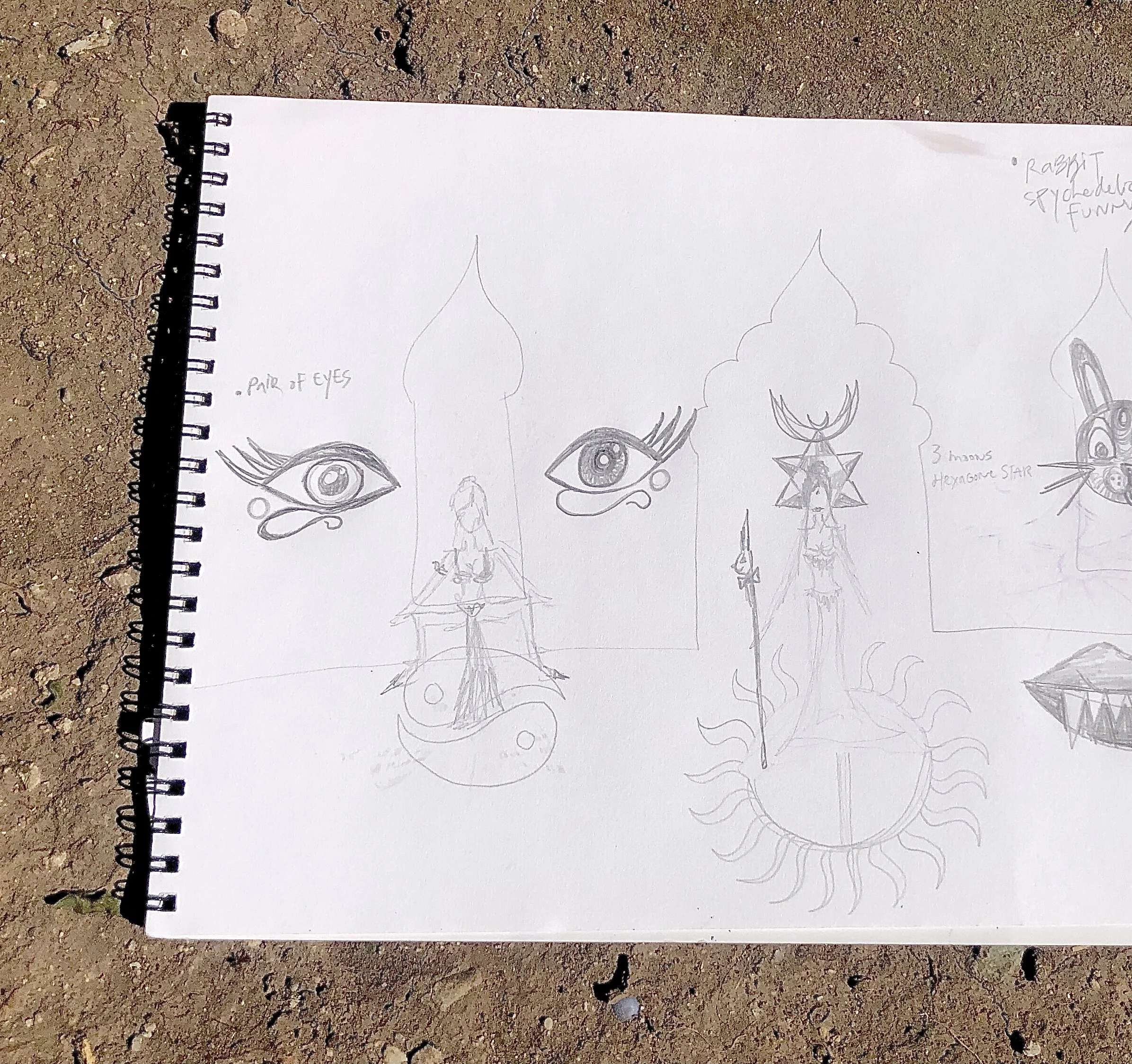 After visiting this beautiful Library in Los Angeles I was immediately inspired to create a series of photographs at this location. The doors reminded me of the portals I love to create when doing rituals, so I decided to create two symbols that would hold energy for me to enter this portal of magic. After taking a few pictures of the door at different angles, a colbat blue and a bright red came to my vision so I drew it quickly as it came on my phone and it given me this. The next step was to make the props and have fun!